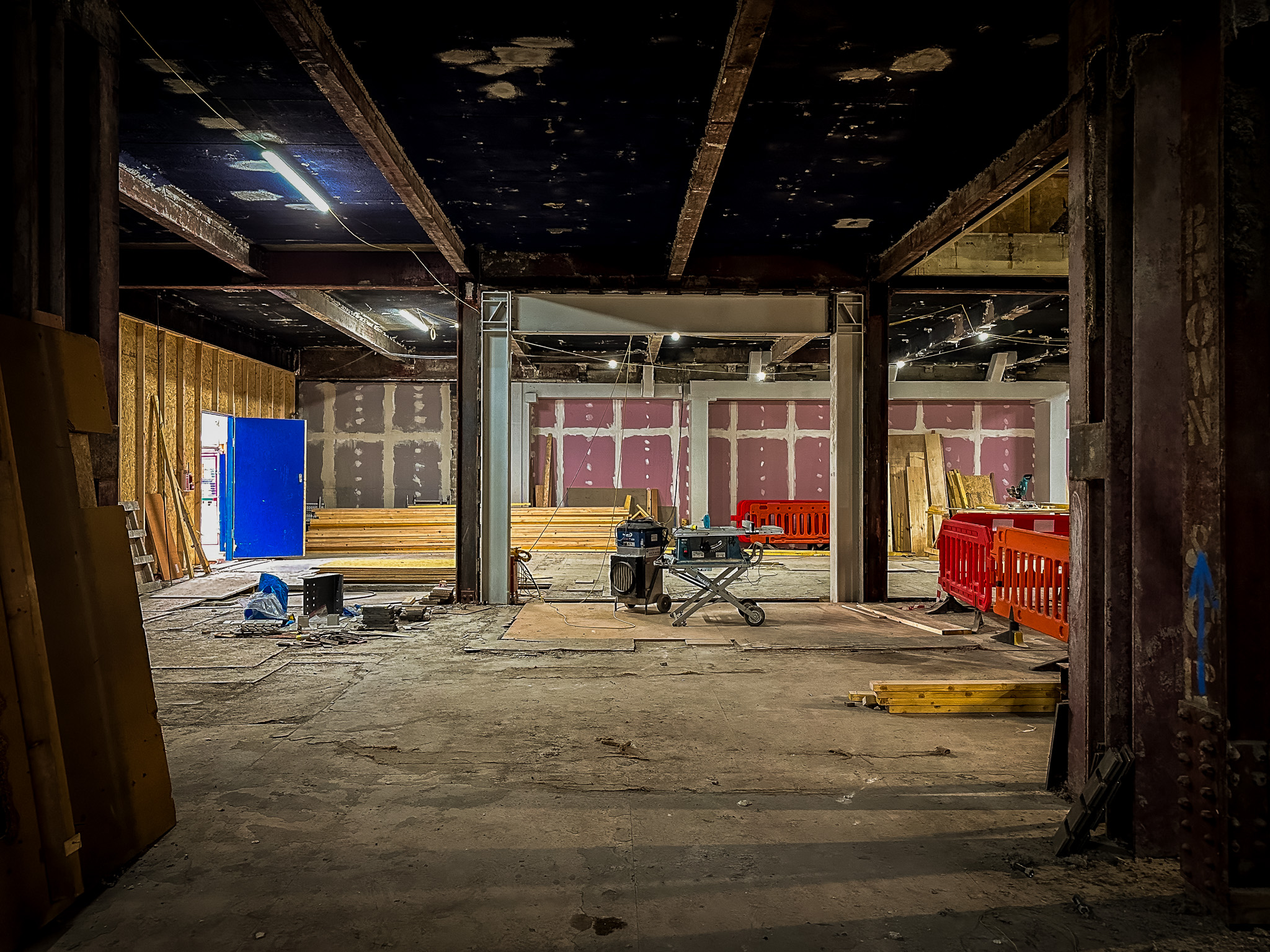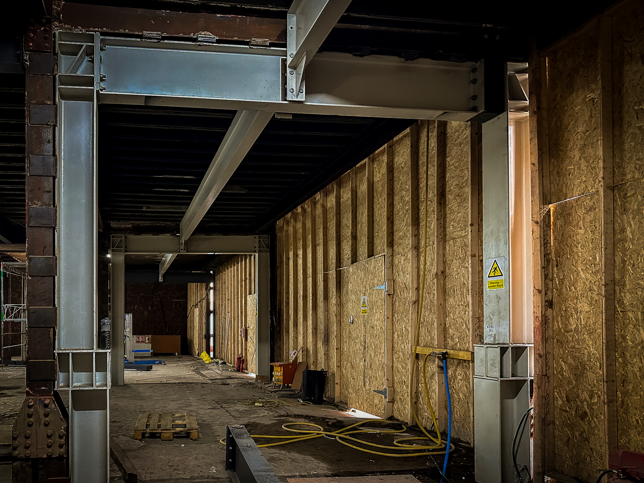 Since our elevator removal post a couple of months ago, our team have opened the floorplates of the four previously vacant stores to create one open space and installed additional structural support beams.