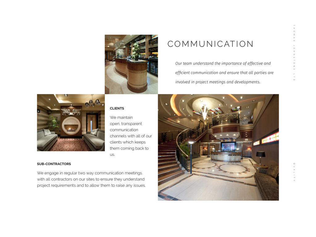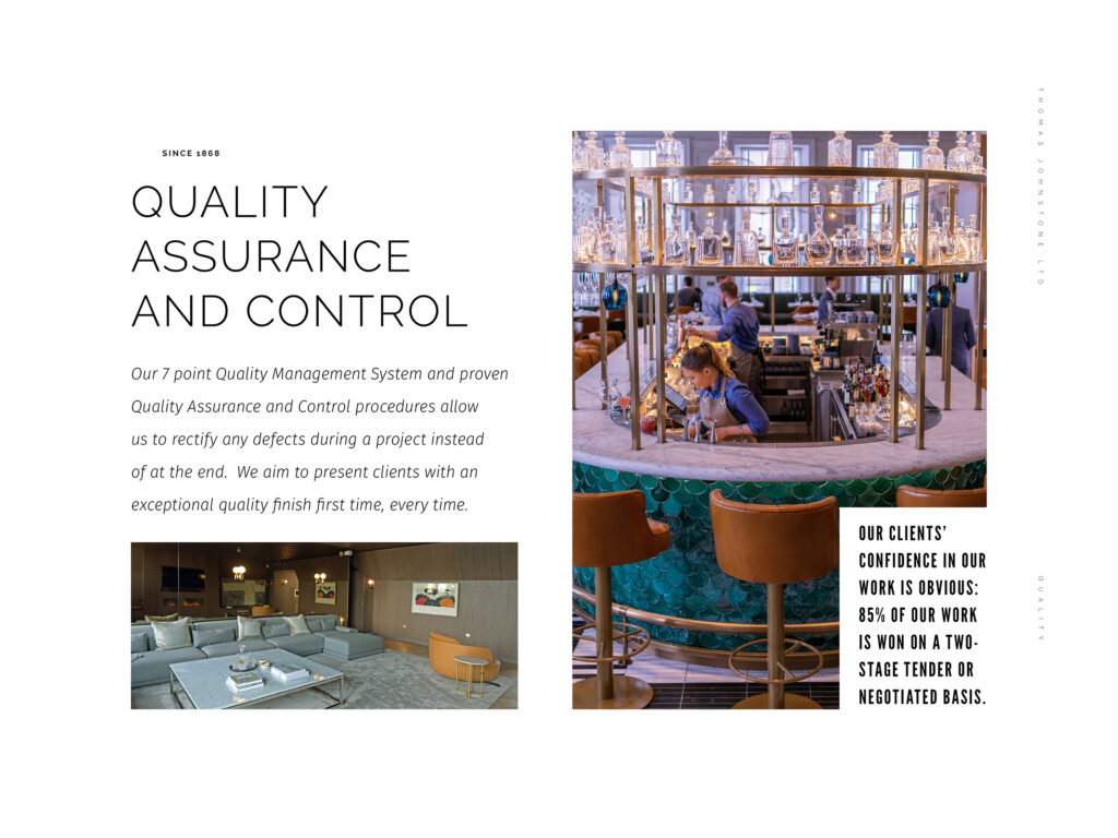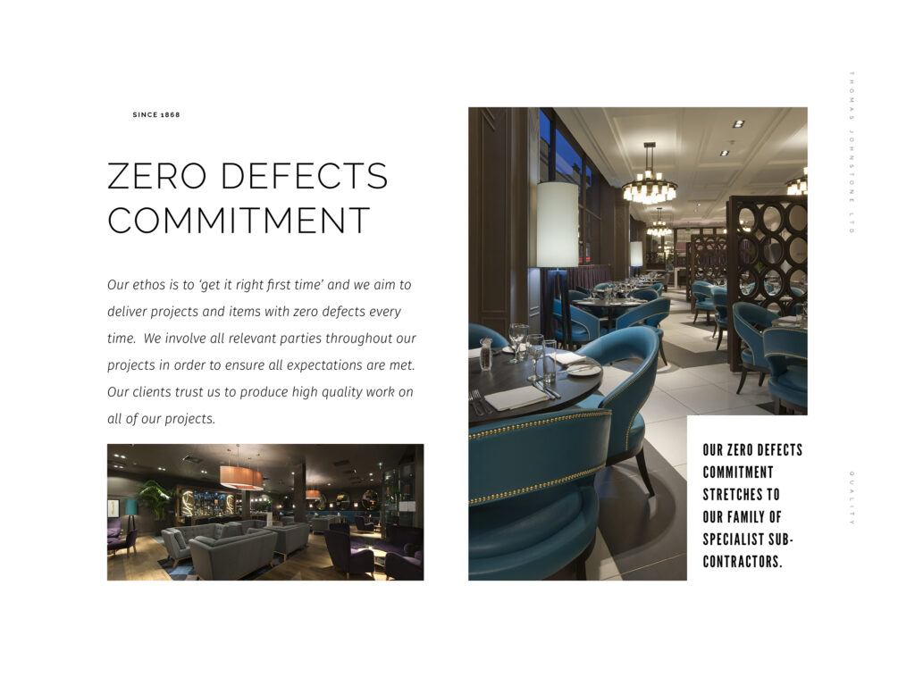 Our reputation for delivering exceptional quality and superior service has resulted in our enviable repeat client base. We endeavour to achieve zero defects on all projects, consistently delivering outstanding quality first time, every time.