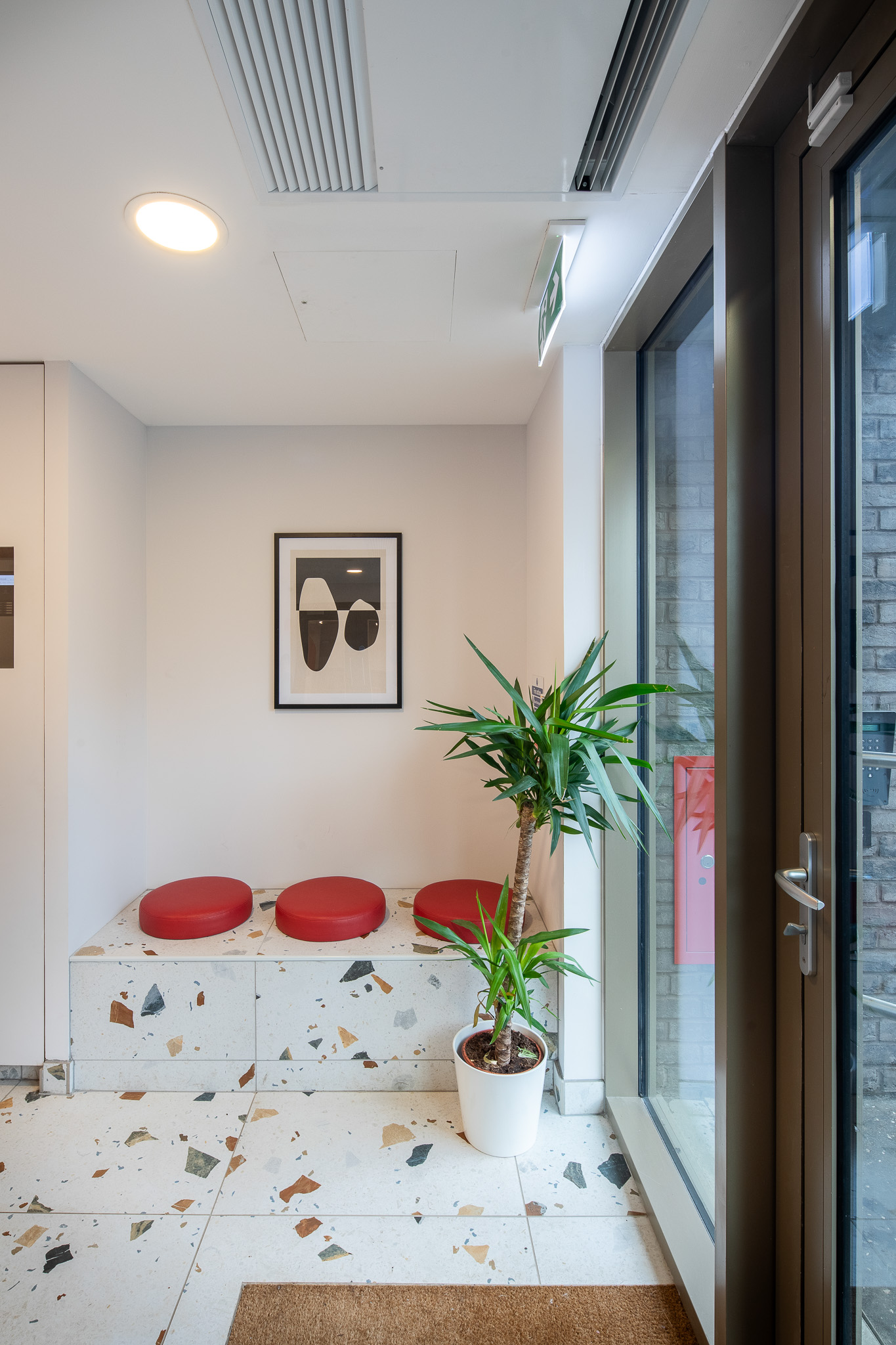 We streamlined building construction with prefabricated bathroom pods and modular construction methods, which sped up the process, reduced waste and enhanced quality control. These pods came fully tiled and plumbed, needing only to be connected to the building’s services on-site. We also integrated eco-friendly systems, such as the rainwater collection tank, to reduce environmental impact. While not comprehensive, these systems reflect a commitment to sustainability and resource efficiency.